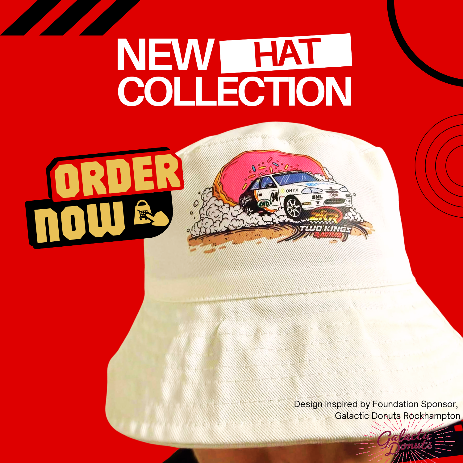 Show your loyalty trackside and beyond with the Two Kings Racing Galactic Donut Bucket Hat. The must‑have accessory for fans who want shade, comfort, and a whole lot of personality. Designed with bold team flair, this bucket hat brings the unmistakable 2KR vibe to every corner of the track.